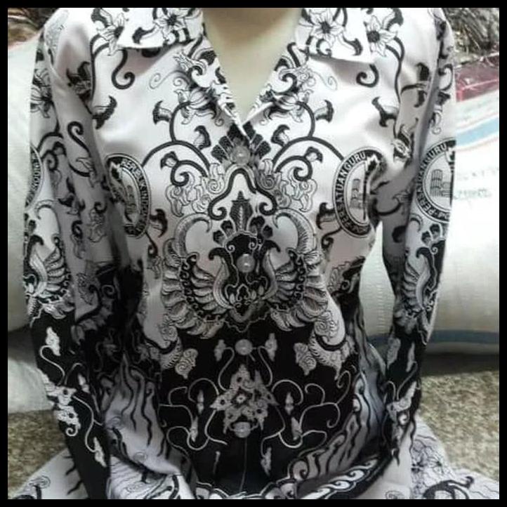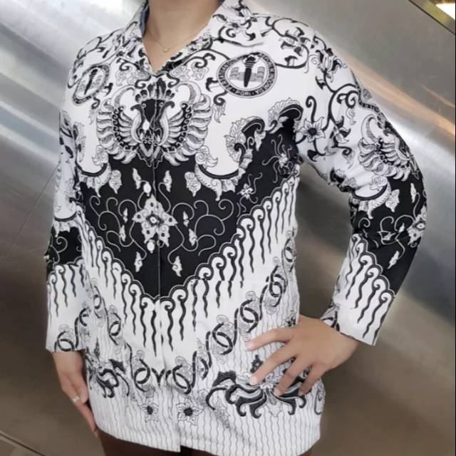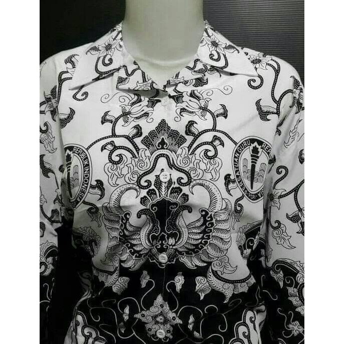 Baju Pgri Wanita Batik Hitam Putih Lengan Panjang Kemeja Pgri Wanita Pakaian Kerja Guru Atasan Pgri Wanita Ada Saku Lazada Indonesia
