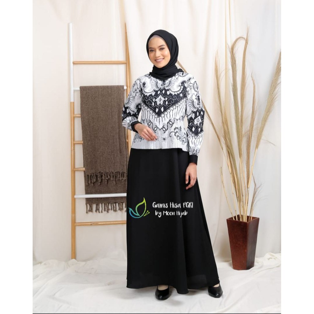 Jual Gamis Seragam Pgri Seragam Pgri Hitam Putih Gamis Hisa By Moon Hijab Shopee Indonesia